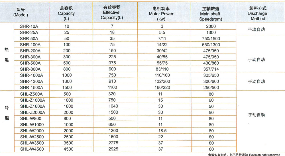 用于塑料、橡膠、日用化工等行業各種物料的混合、攪拌、干燥、著色等工藝。